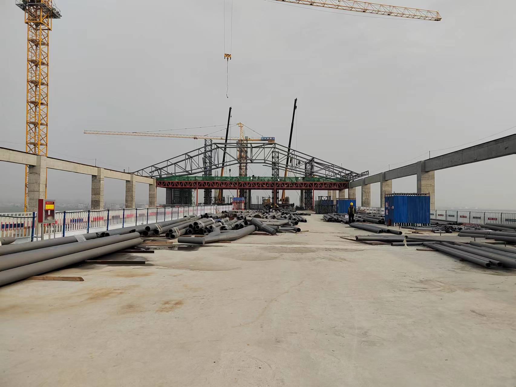 高铁站房管桁架顶推正式开始
